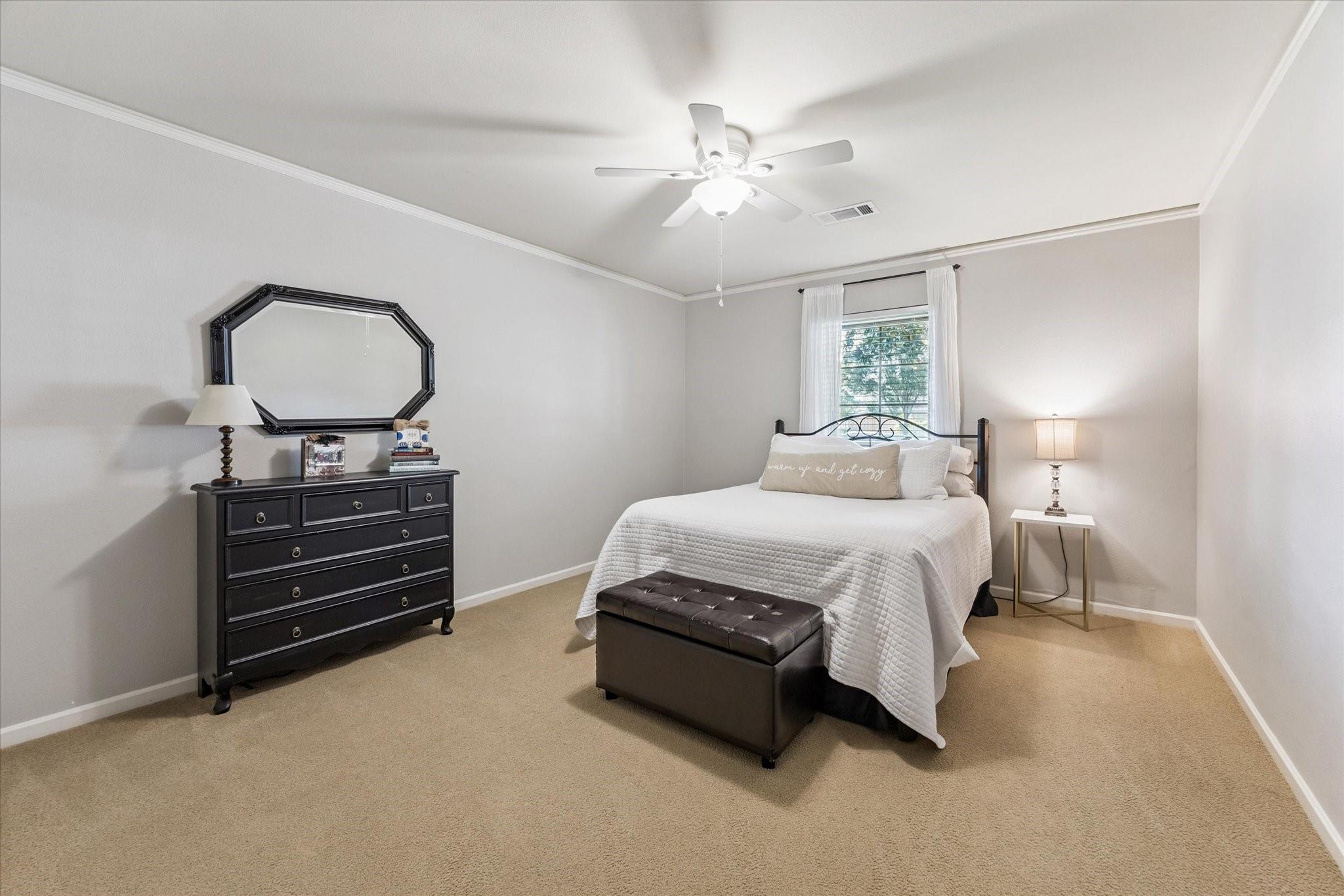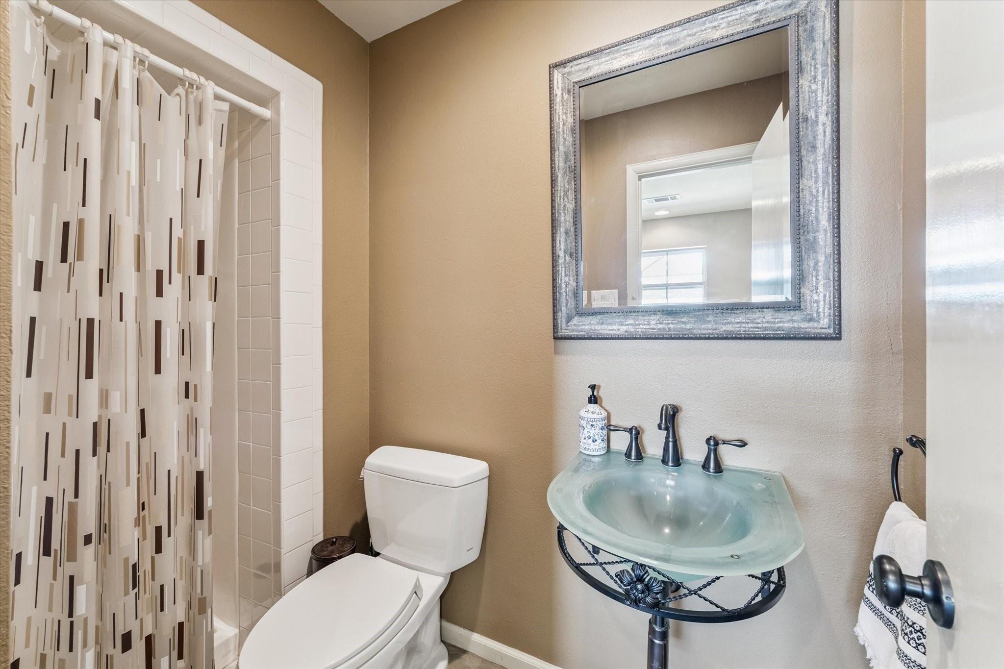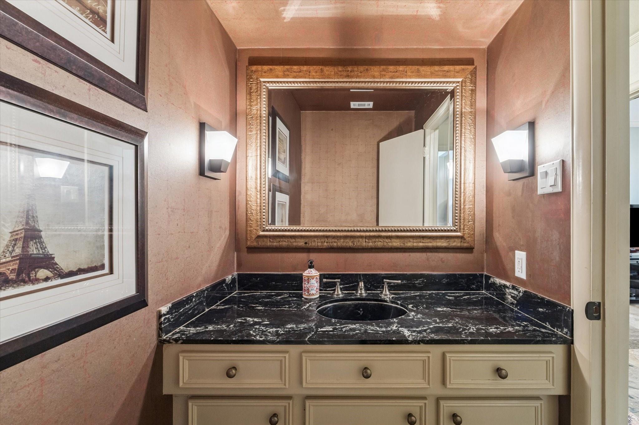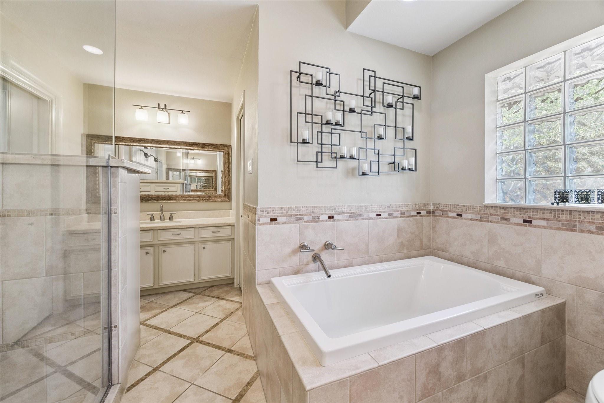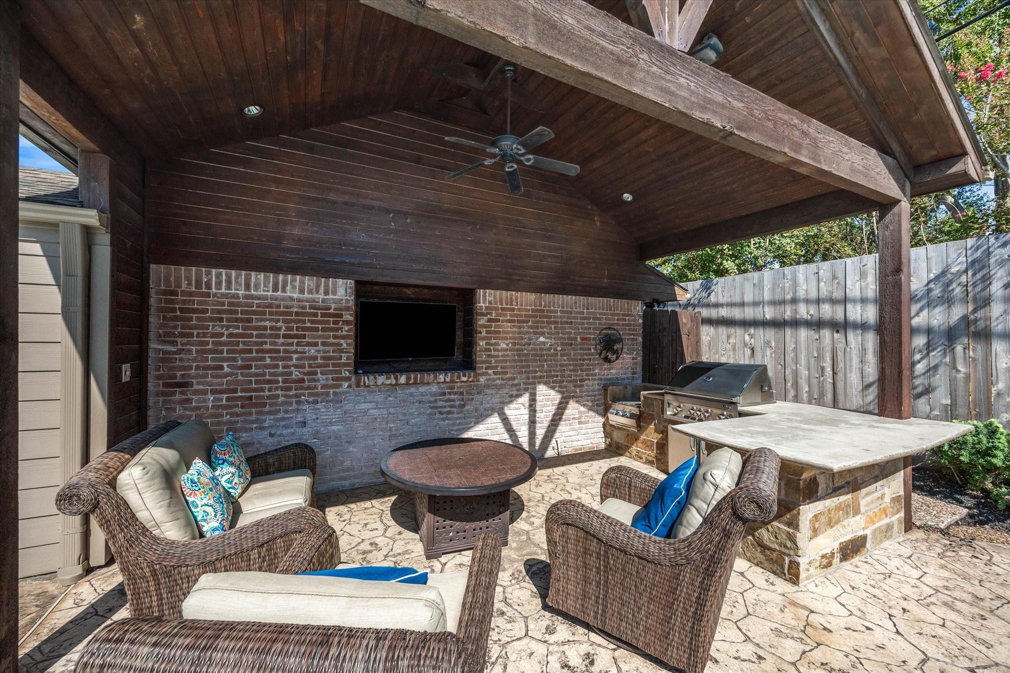 Coveted one-story home in Frostwood! Nestled on a quiet cul-de-sac, this residence boasts high ceilings, slate floors, and a thoughtfully designed floor plan with four bedrooms, three full bathrooms, a powder bath, and a game room. The expanded kitchen features granite counters, a gas range, two ovens, and a built-in refrigerator. Entertain with ease in the wet bar, complete with ice maker, wine refrigerator, sink, and counter seating, opening seamlessly to the family room. The family room is accented with vaulted, beamed ceilings, built-in bookshelves, and a central gas log fireplace framed by French doors that open to the backyard. The large primary suite offers a spa-like bath with a double-head walk-in shower, separate tub, dual vanity areas, and two walk-in closets. Enjoy year-round outdoor living with a sparkling pool, covered patio, built-in grilling area, and bar seating. Zoned to highly sought-after schools, including Bunker Hill Elementary, Memorial Middle, and Memorial High.