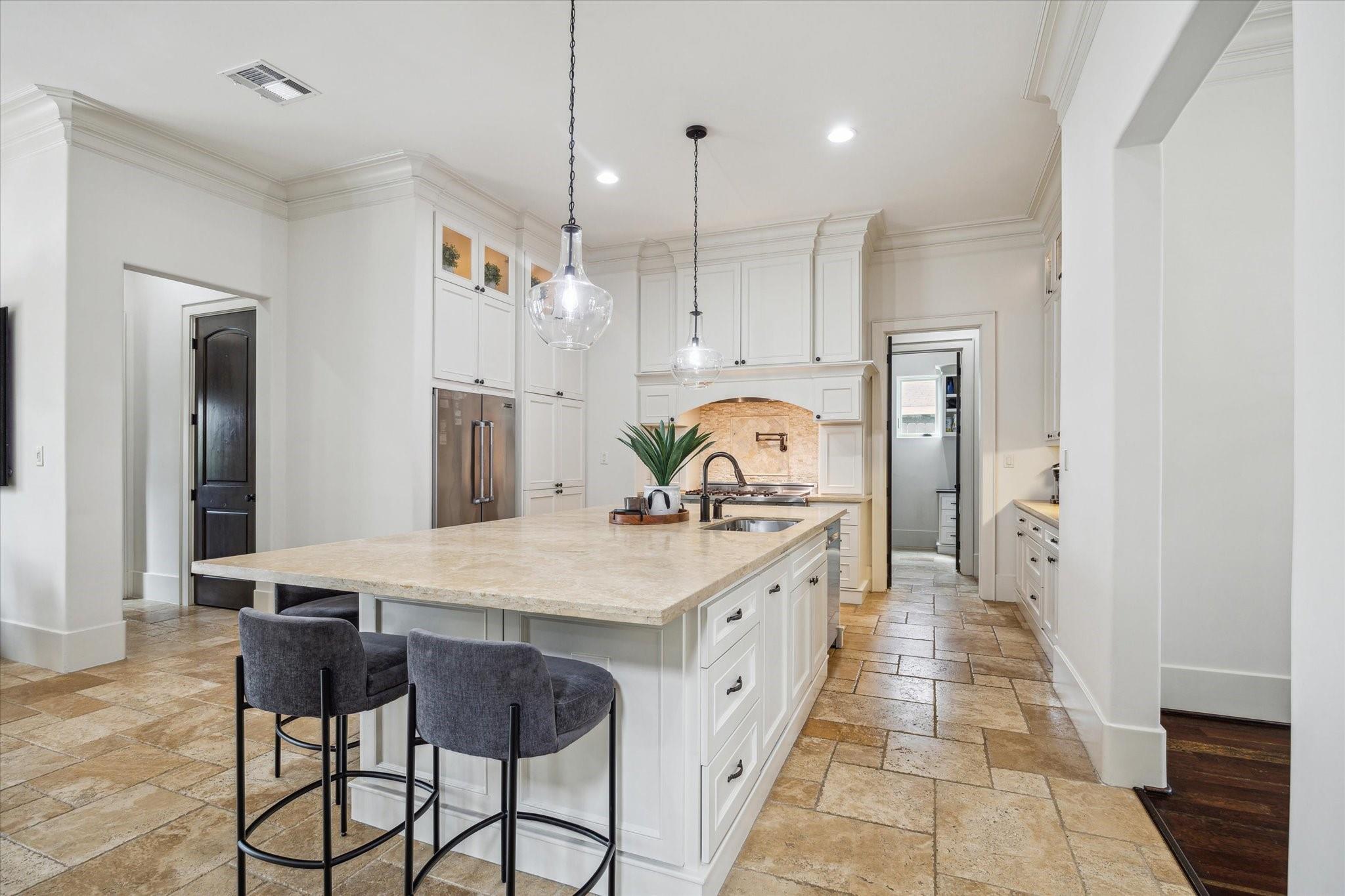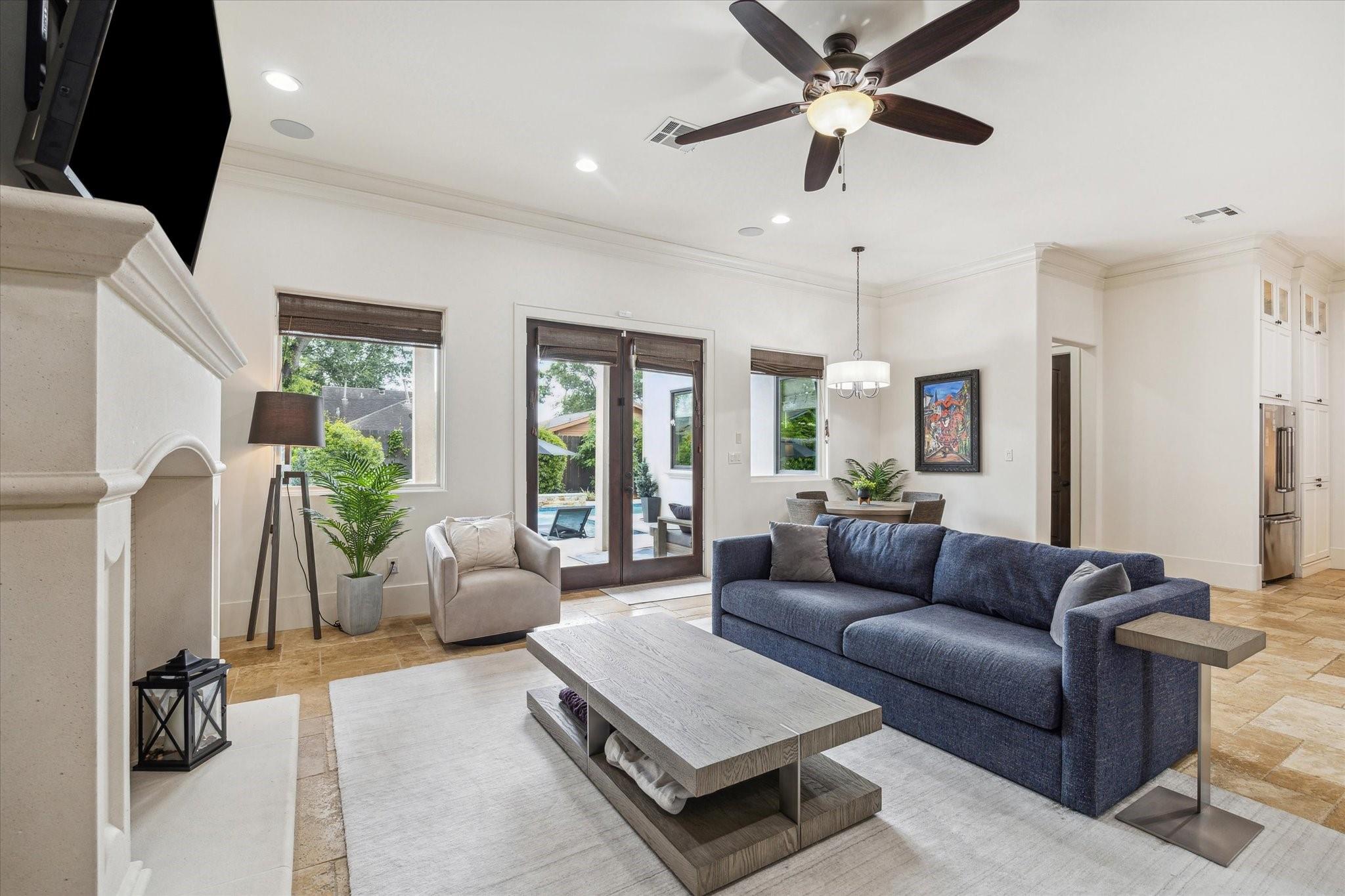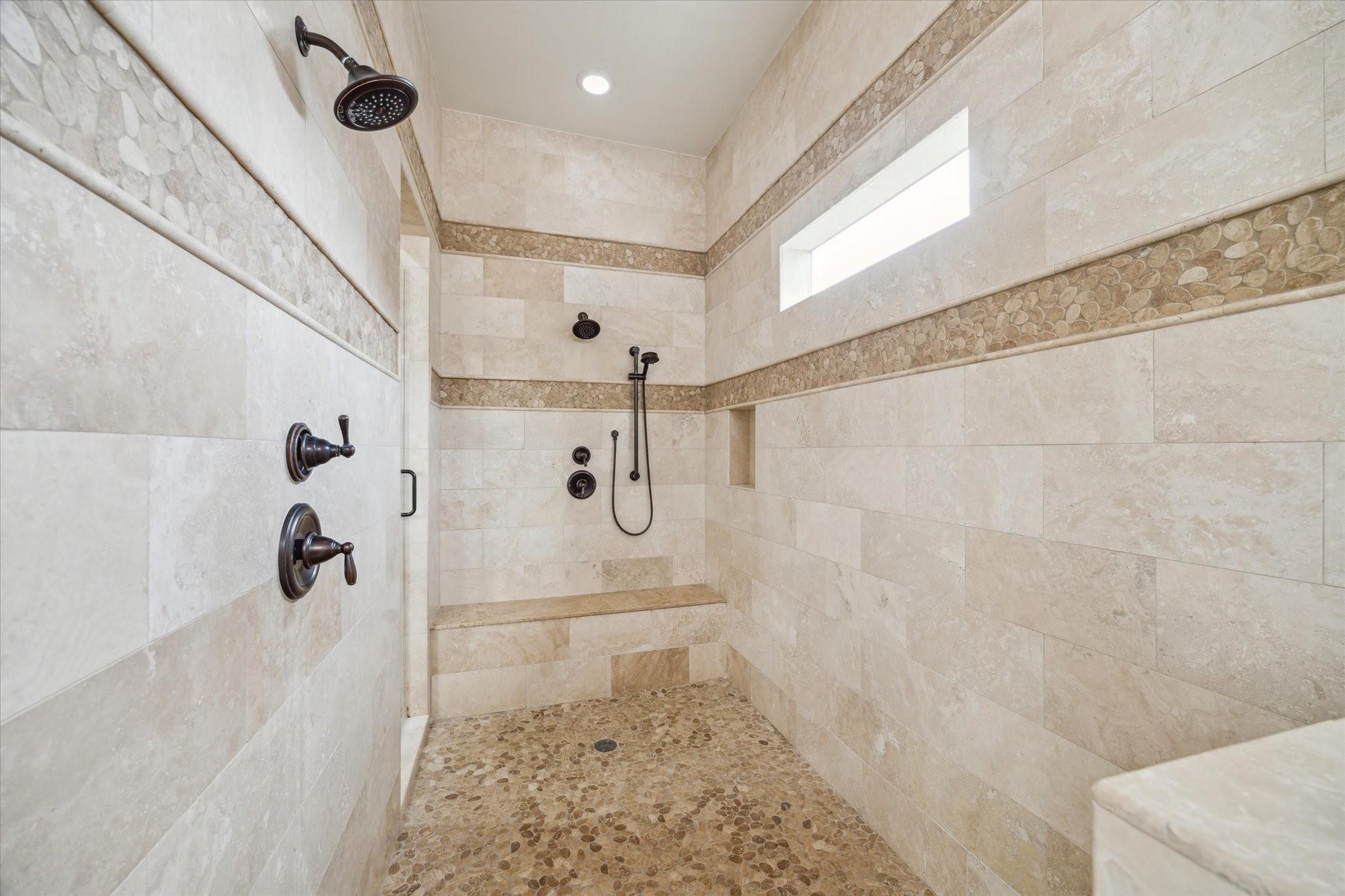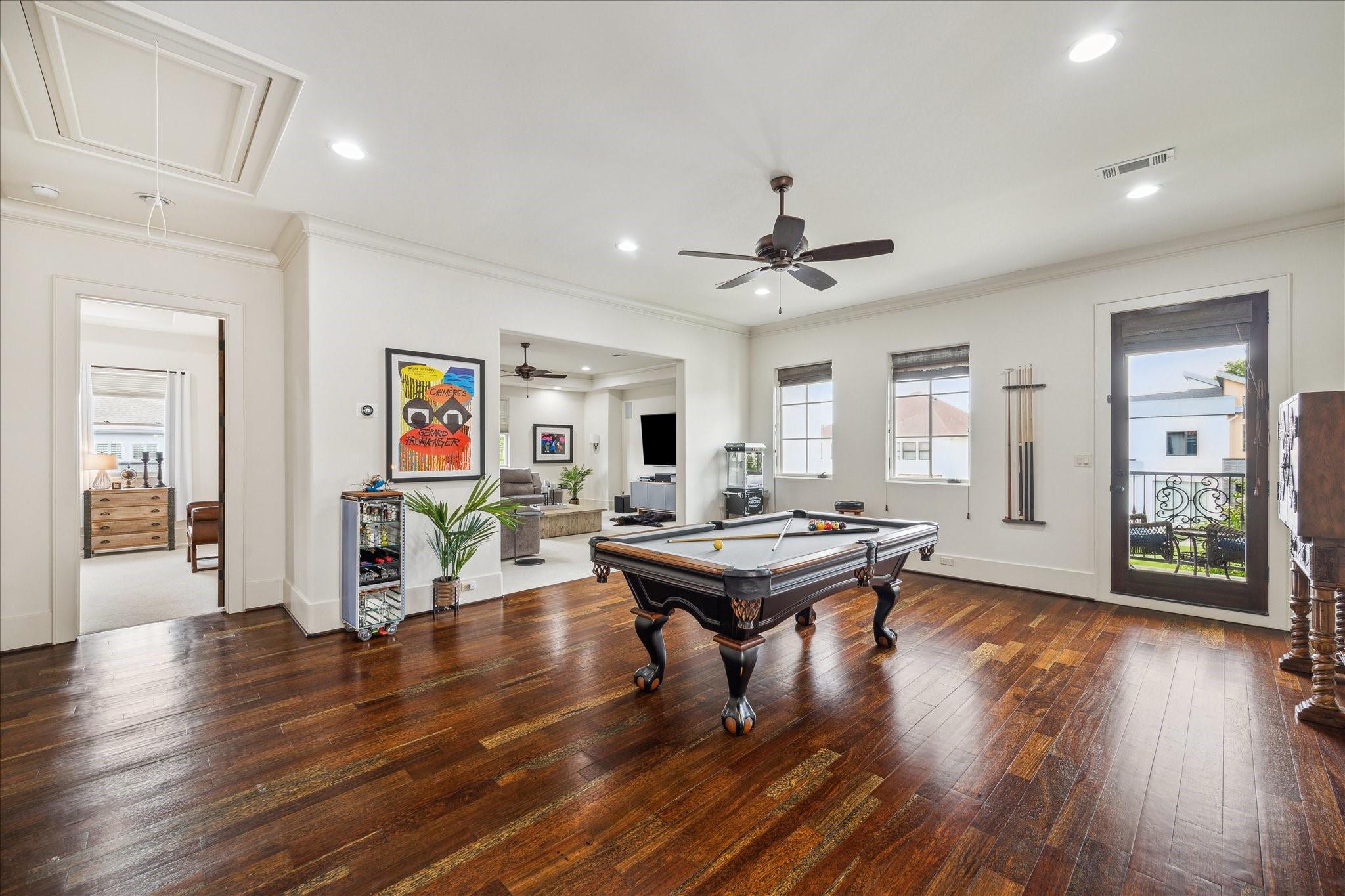 Impressive custom stucco Oak Forest residence offering nearly 5,000 sq ft of refined living. Designed for both luxury and function, this home features four to five bedrooms, high ceilings, hardwood floors, a wine cellar, an office, a game room with a wet bar and beverage fridge, a media room, and a flex room. The kitchen features stone countertops, stainless appliances, a six-burner double oven range with pot filler, and an island with seating. The first-floor primary suite overlooks the pool and showcases wood floors, surround sound, and a luxury bath with dual sinks, a soaking tub, a dual-entry shower, and a walk-in closet. Upstairs, enjoy a versatile layout with three additional bedrooms, a media room with surround sound, a game room, and generous storage. Step outside to the covered outdoor kitchen and living, and a pool and spa with water and fire features. Zoned to highly sought-after Oak Forest Elementary, this home is the ultimate blend of luxury, comfort, and location.