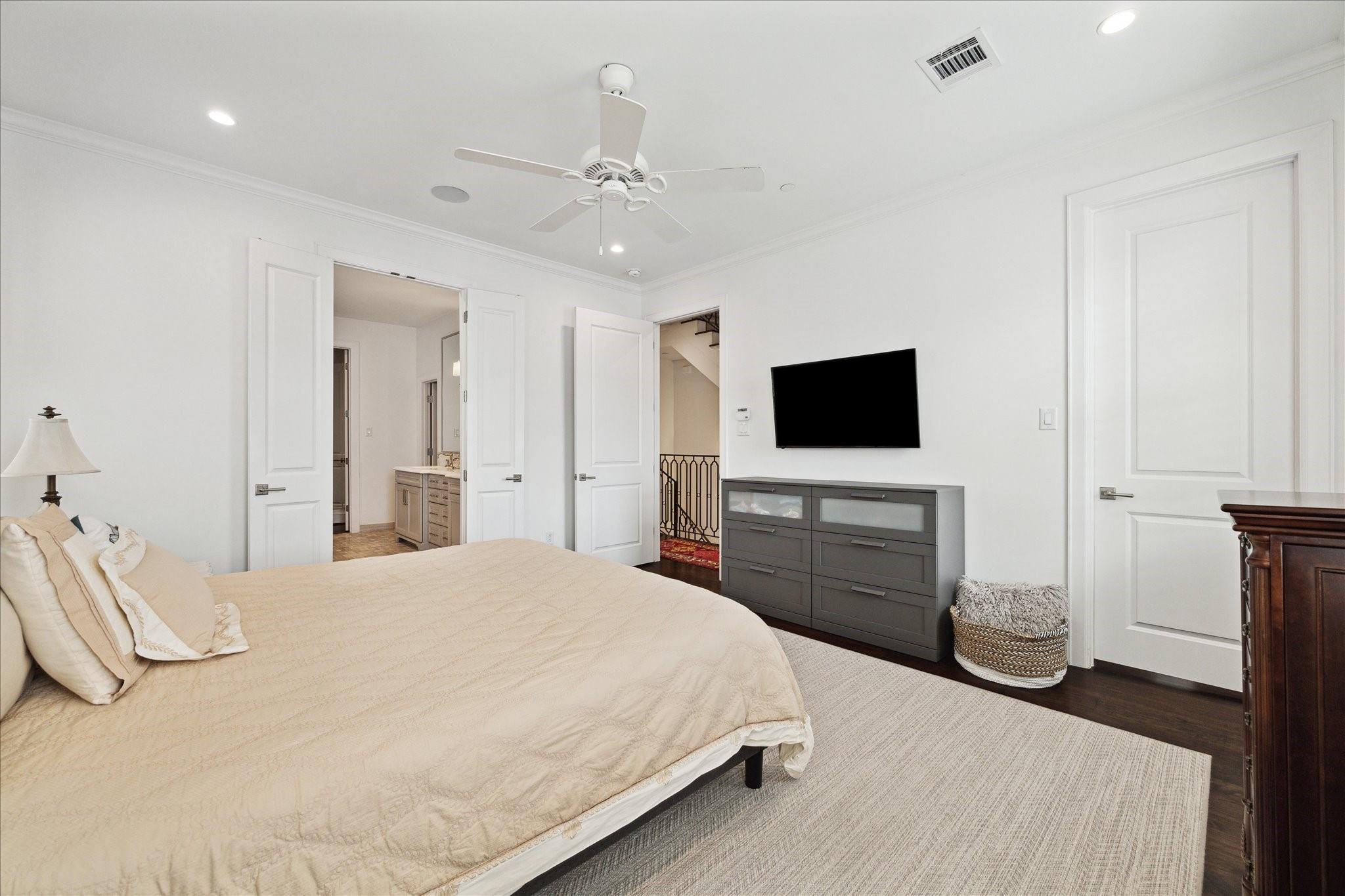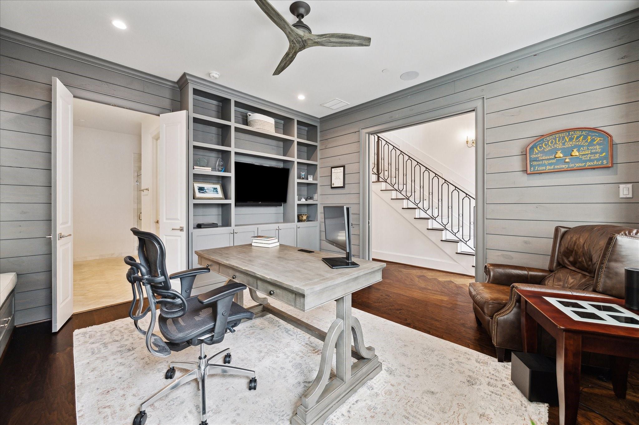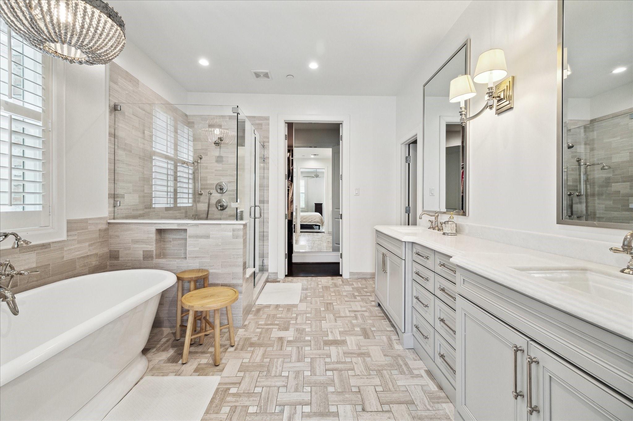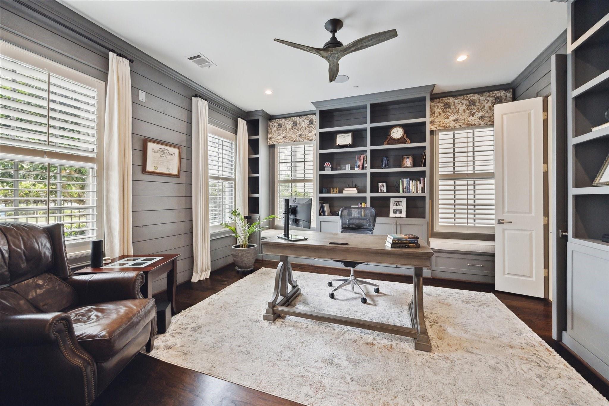 Located in the coveted gated community of Memorial Green, this 4-story home offers elevated living with timeless design. Built by Pelican Builders with interiors by Julie Dodson, every detail reflects luxury and sophistication. The brick exterior and copper gas lanterns, make a striking first impression. The entry-level features an elevator, garage access, and a study or guest suite with an en-suite bath. The second-floor living, dining, and kitchen areas flow seamlessly--ideal for entertaining and everyday living with a convenient half bath. The kitchen has an island, stainless appliances, a gas range, designer finishes, and a balcony perfect for grilling or a kitchen garden. The third floor offers the primary suite with a spa-inspired bath and walk-in closet, plus a guest suite and laundry. The fourth level has a game room or additional bedroom with a full bath, and a terrace. Enjoy a true lock-and-leave lifestyle steps from upscale shops and dining, and zoned to exemplary schools.